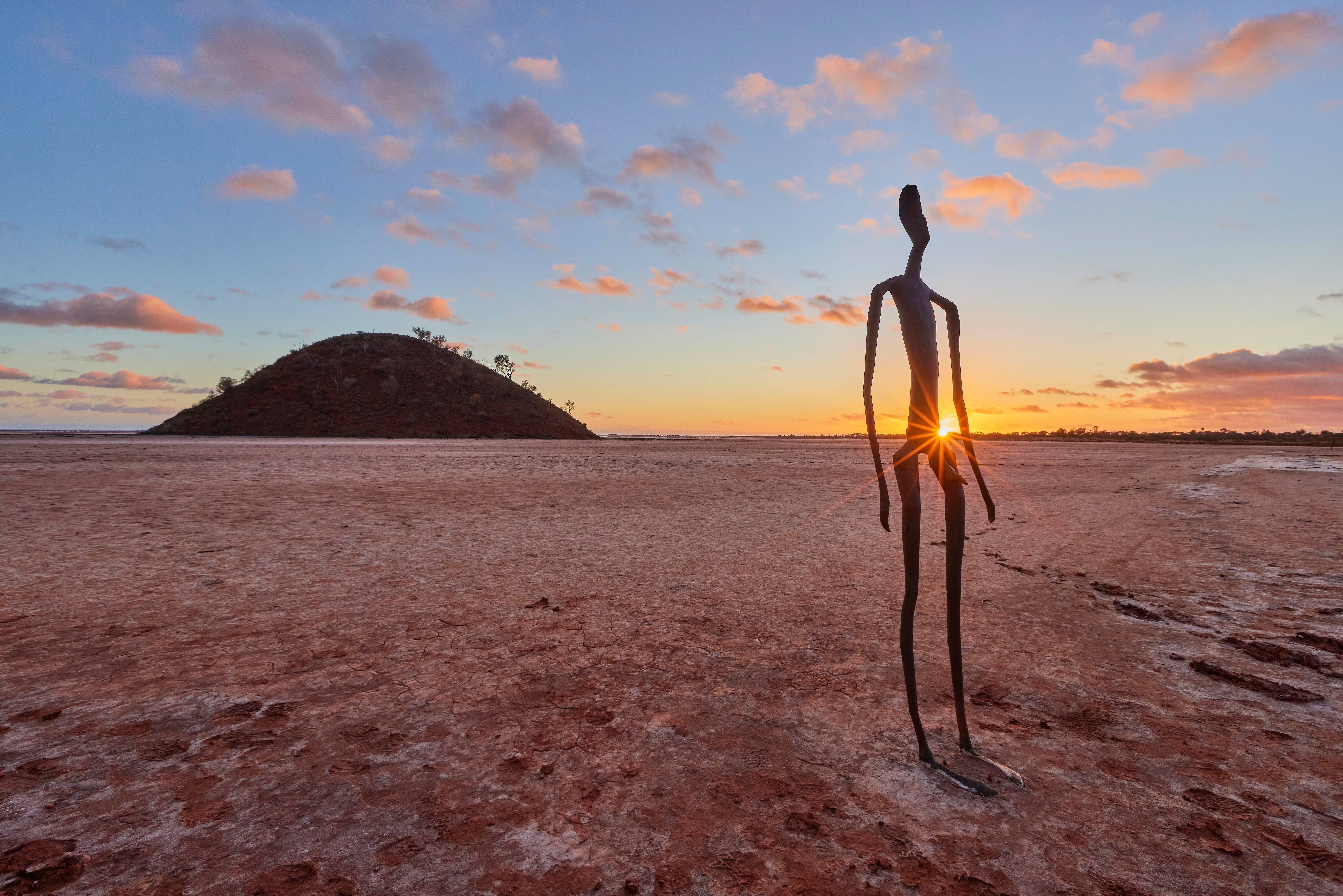 The sculptures were produced by British artist Sir Antony Gormley and each is modelled from a body scan of 51 men, women and children from Menzies. The sculptures are full height, but their width is narrowed, making them a waif-like. Each one is several hundred metres from the next, and exploring from one to the other, your eyes will spot more on the horizon.